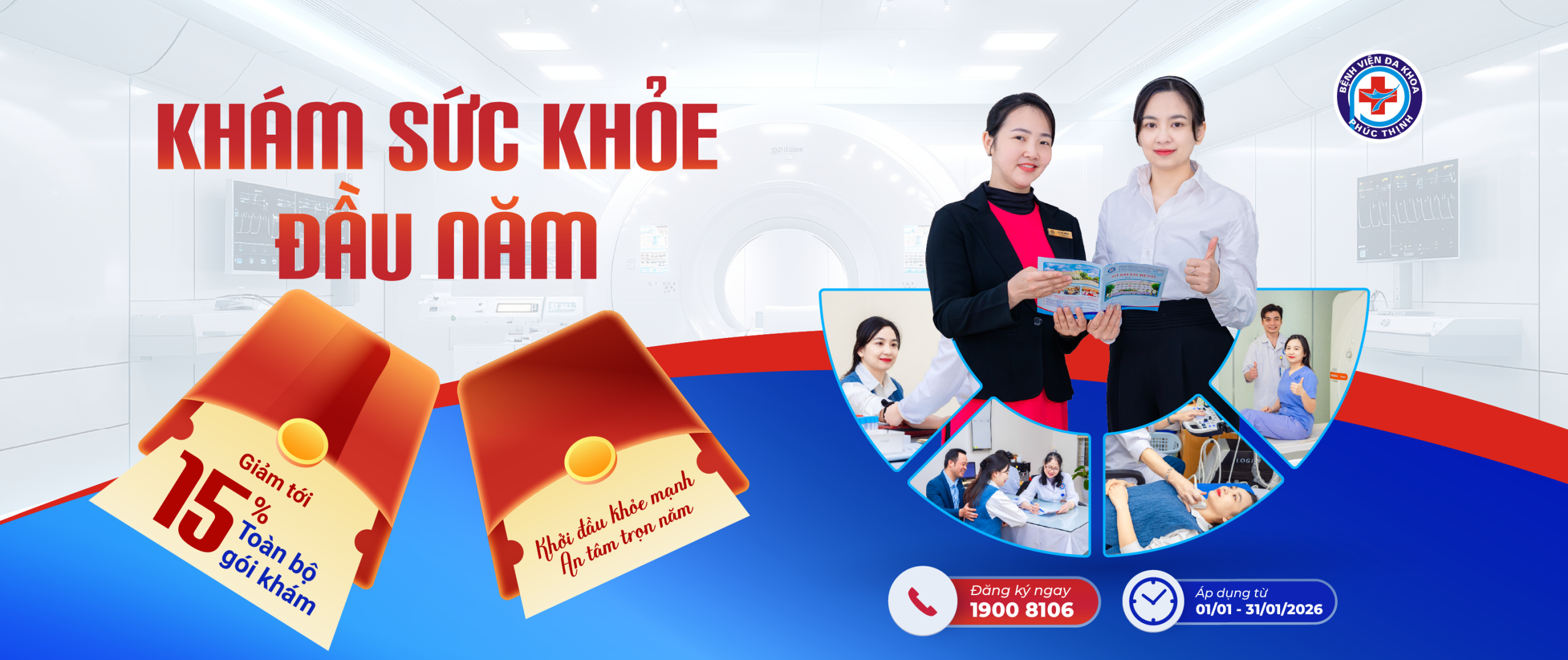 Ưu đãi khám sức khỏe đầu năm 2026 tại Bệnh viện Đa khoa Phúc Thịnh: giảm đến 15% các gói khám tổng quát, chi phí từ 1.999.000 đồng. Khởi đầu khỏe mạnh, an tâm trọn năm.